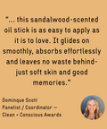 Known for its soothing benefits, sandalwood has been used for centuries to alleviate stress and anxiety. May be applied all over the body, apply to wrists and ankles for a calming effect.